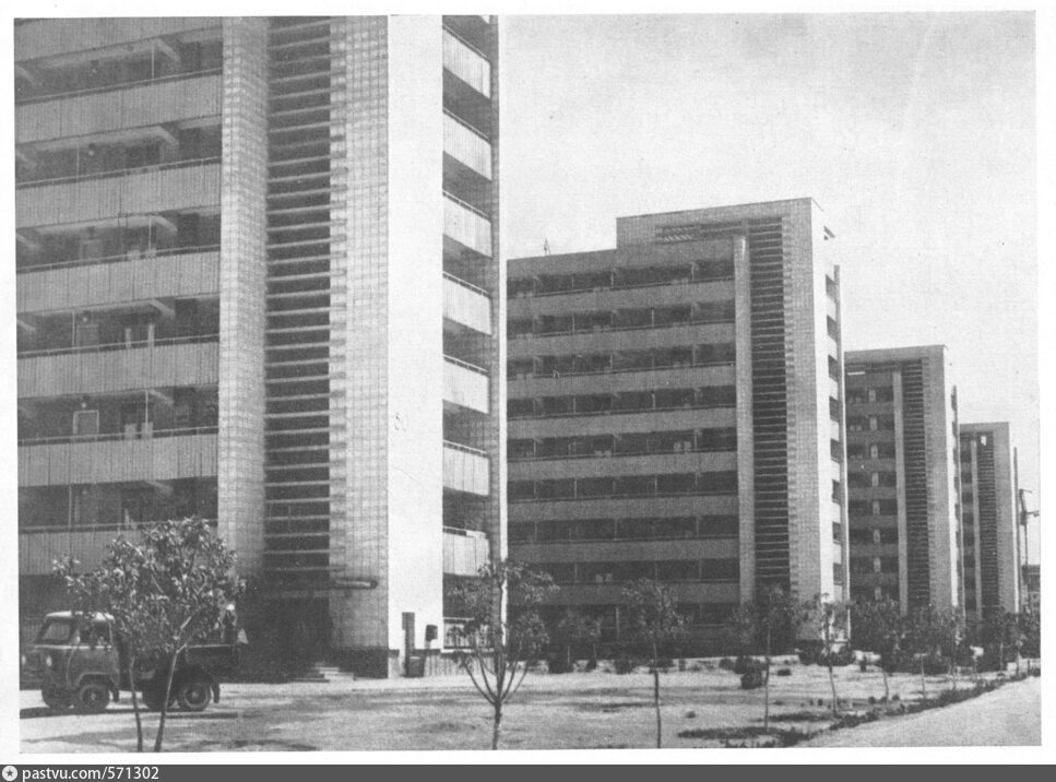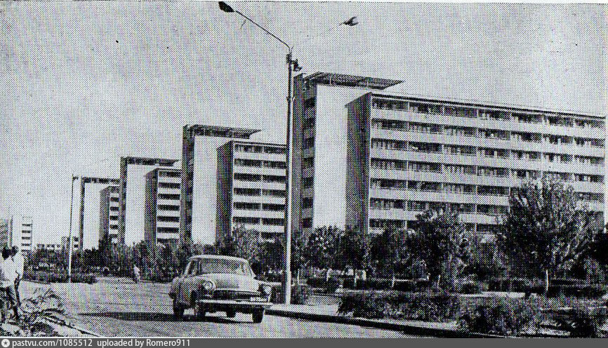 Малоэтажный дом и секционный дом с центральным типом доступа . Галерейные дома ориентированы, согласно рекомендациям, меридионально с севера на юг и выстроены по длинным сторонам прямоугольника . фото - отчёт .