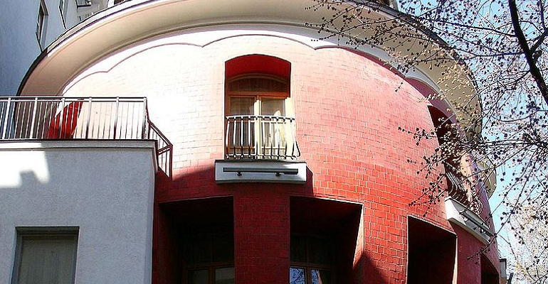 Дом-яйцо построен по проекту архитектора Сергея Ткаченко в 2000—2002 годах и является характерным примером лужковского стиля в московской архитектуре . Фото: Юлия Батурина •••