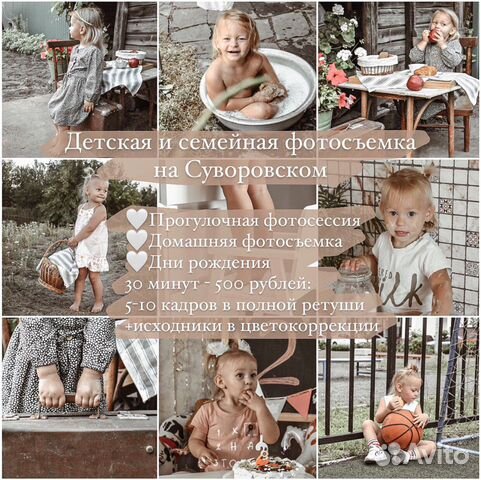 Домашняя фотосъемка; Уличная фотосъемка; Мероприятия; Онлайн фотосъемка