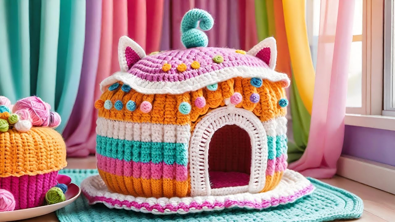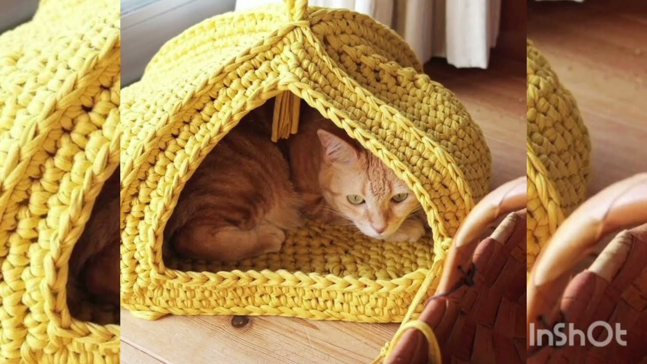 Домик для кошки связанный крючком 142 фотографий