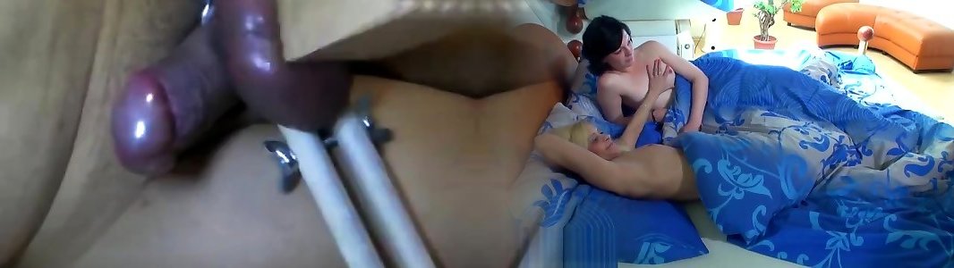 Lesbians share doble head dildo