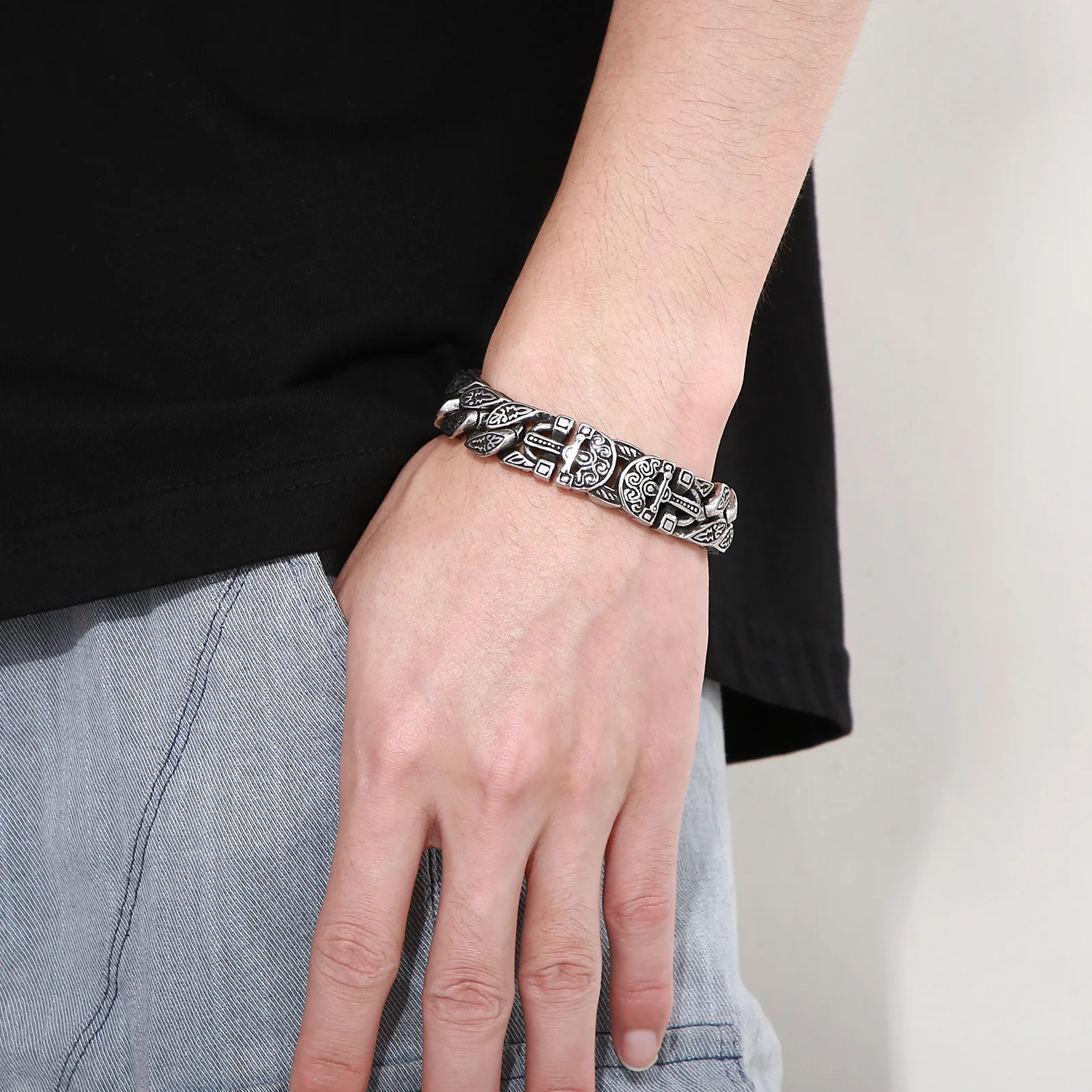 cBnKQrVVДолго искали Domineering Personality Tang Grass Pattern Bracelet Men's Stainless Steel Retro Ethnic Style Bracelet Birthday Gift, но не могли найти? Предоставляем вашему вниманию Domineering Personality Tang Grass Pattern Bracelet Men's Stainless Steel Retro Ethnic Style Bracelet Birthday Gift по лучшей цене на рынке!