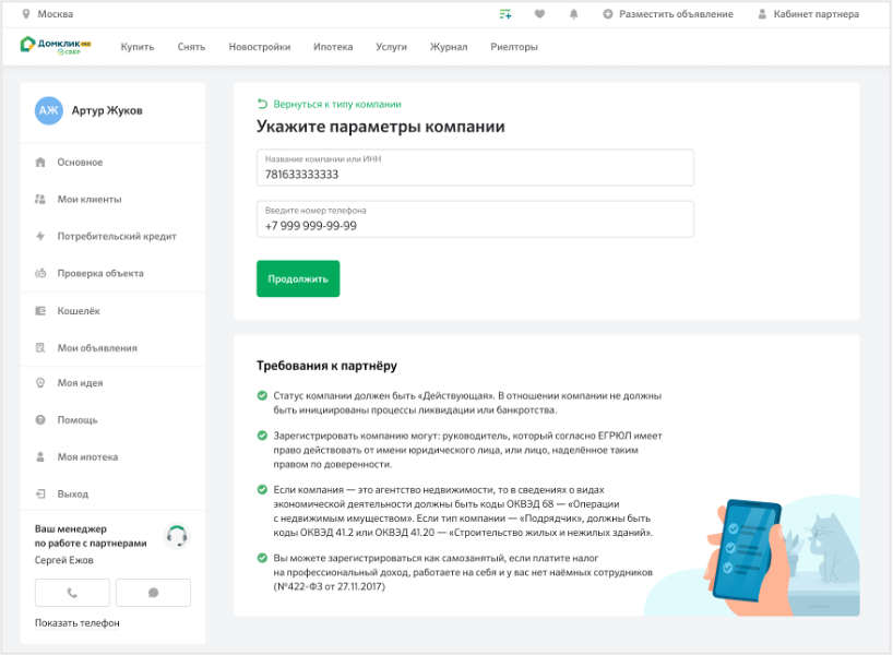 Домклик войти партнер