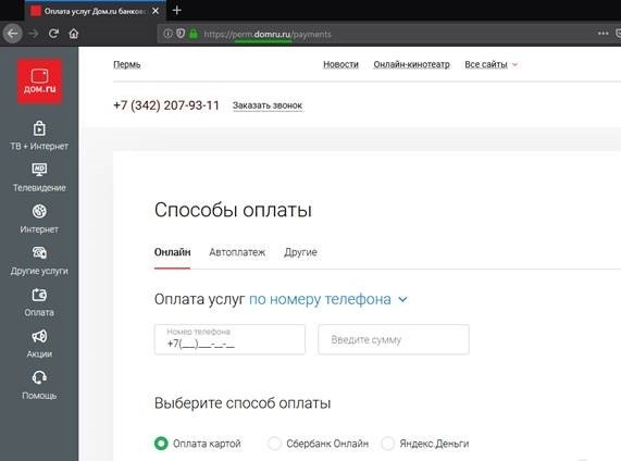 Domru оплата