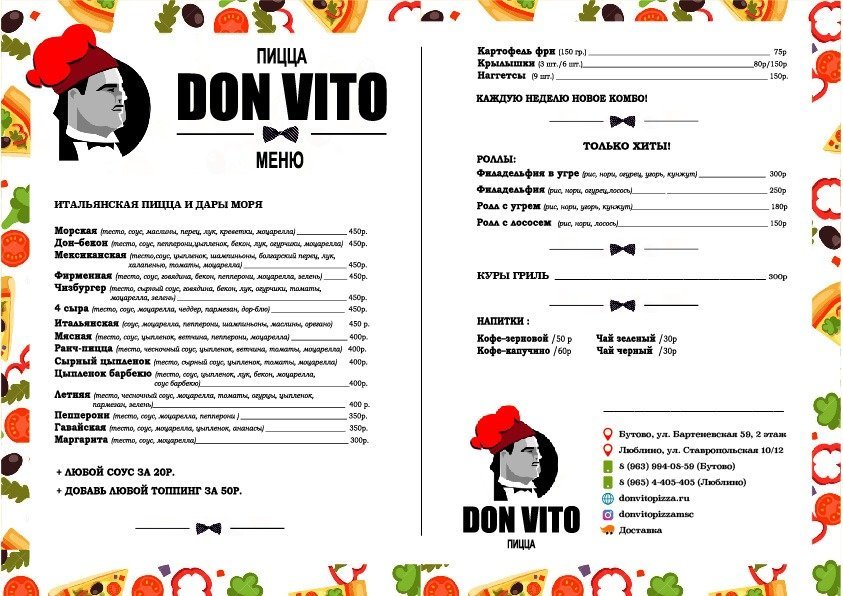 Дон арио меню
