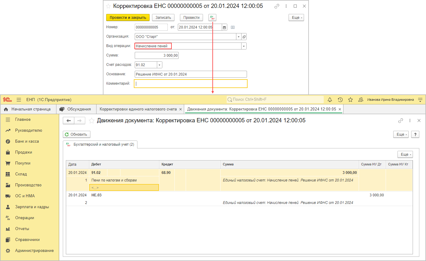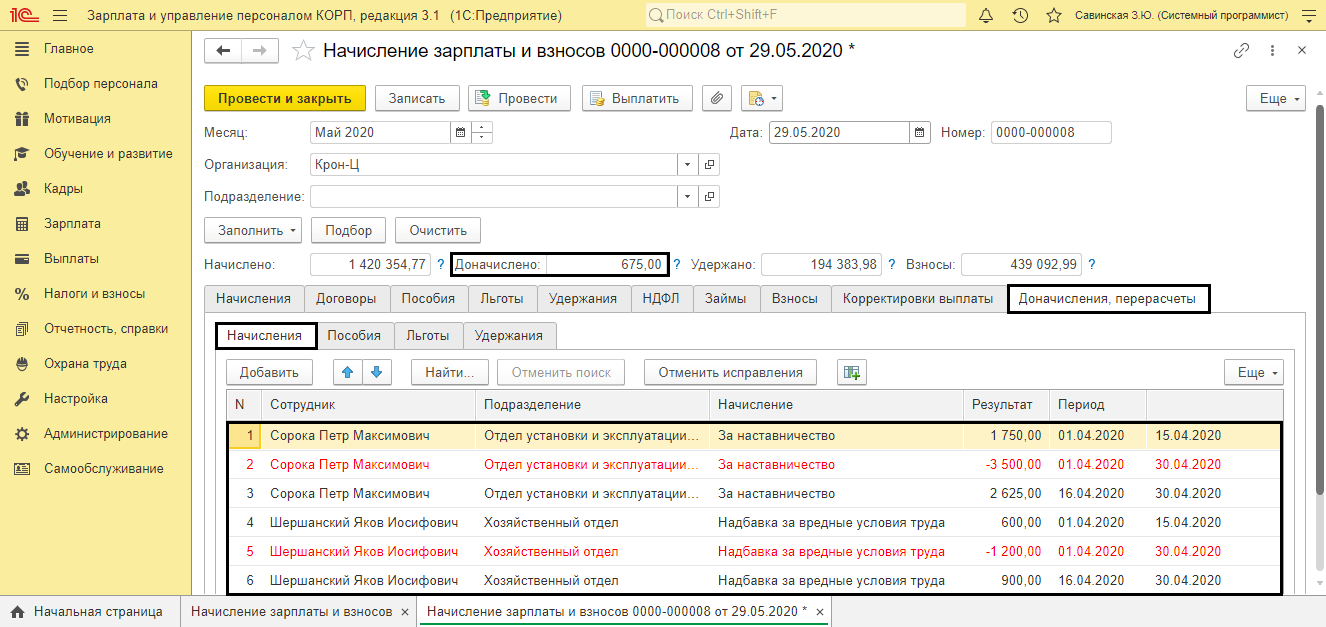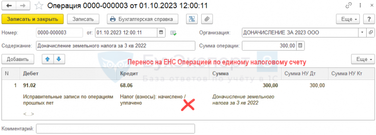 Доначисление налогов в 1с