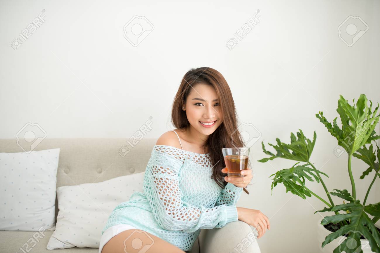 Donna asiatica in casa