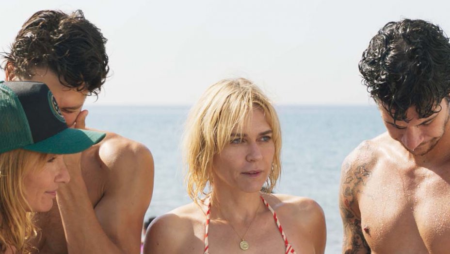 Un tipo con due bionde sul divano