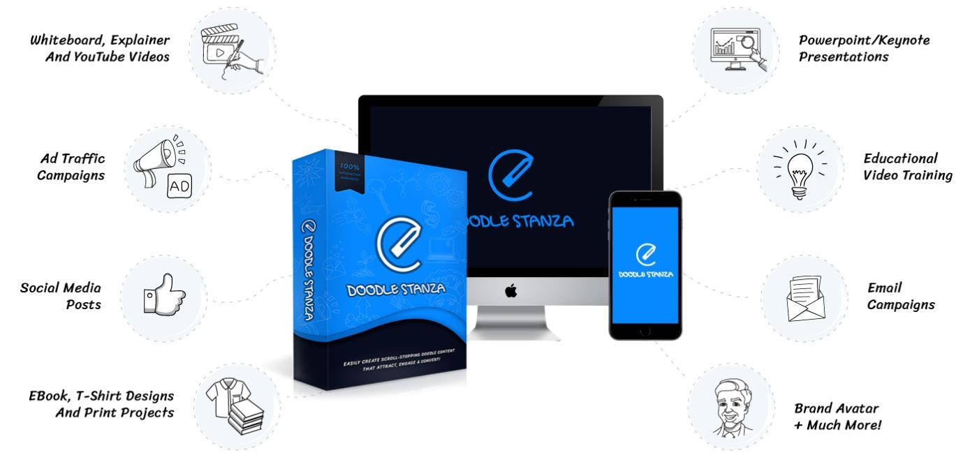 With Doodle Stanza, you’ll unlock over 2739 done for your hand-drawn assets that you can “copy and paste” into the software of your choice to start creating eye-catching content for your clients right away. Never before has a doodle toolkit library this big been released.