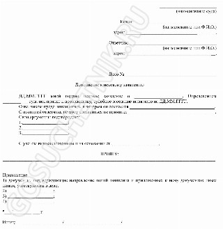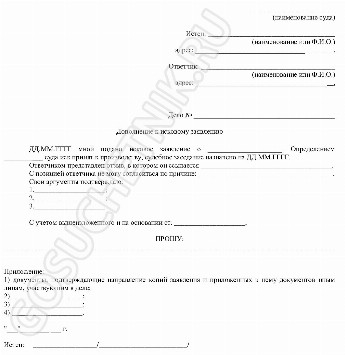 Дополнение к иску образец