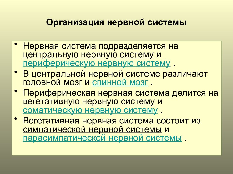 Дополните данные предложения нервная система подразделяется на