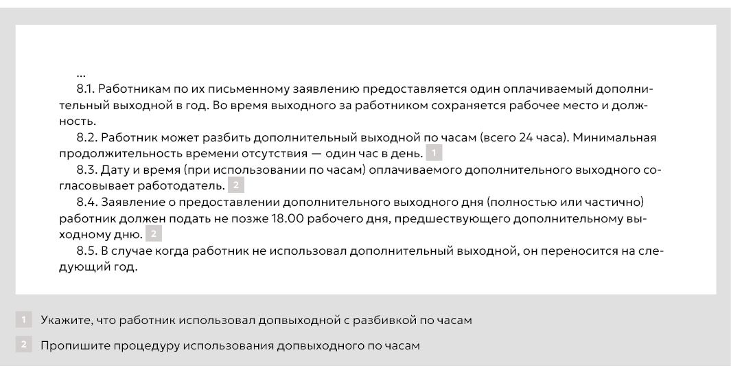 Дополнительные выходные оформление