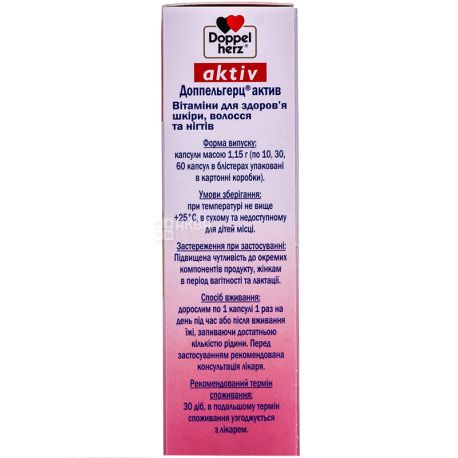Доппельгерц актив Витамины для кожи, волос и ногтей капсулы №30 (10х3): официальная инструкция производителя . Средняя цена 188 .04 - 443 .50 грн .