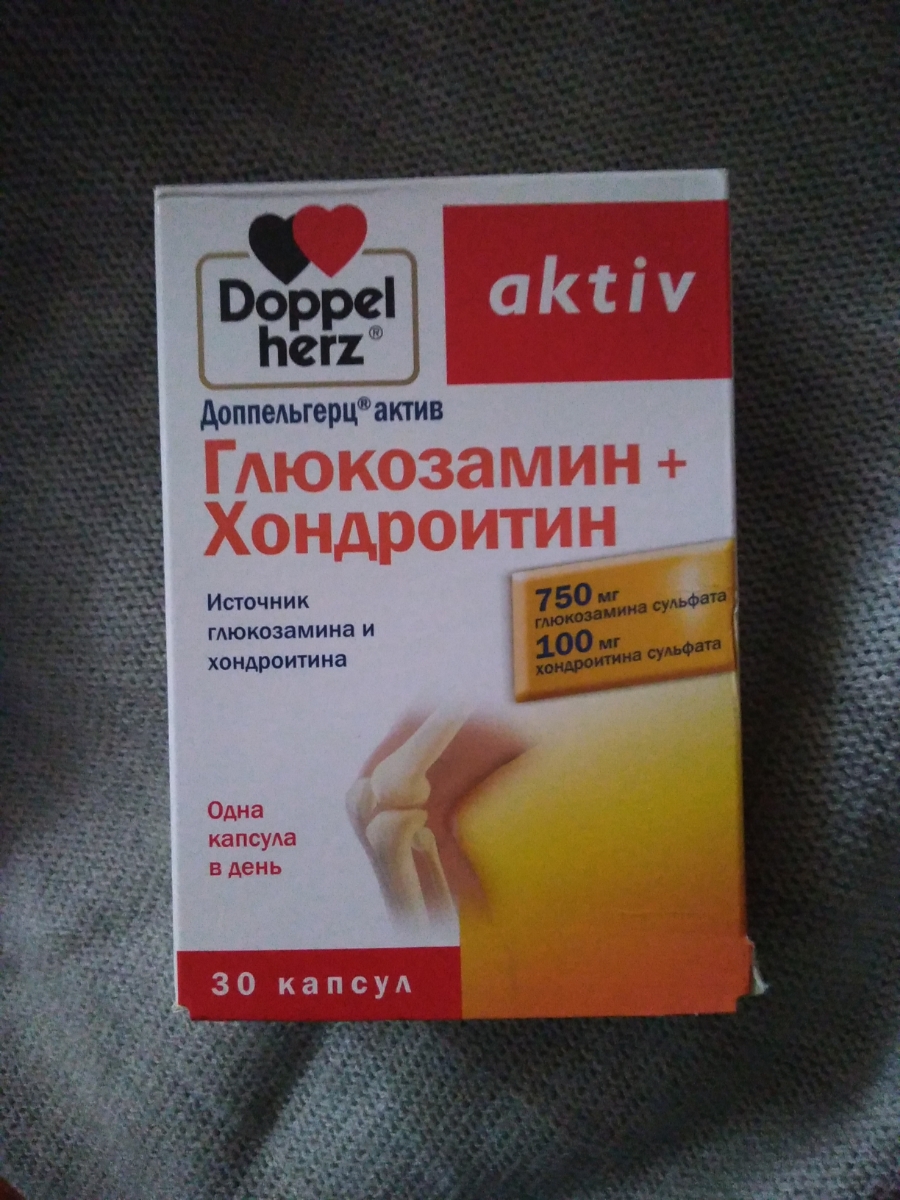 Глюкозамин+Хондроитин Доппельгерц, производство Германия, 30 капсул . Время от времени при физических нагрузках или если употребляю пищу, которая не восполняет возобновление суставов и жидкости в суставах я чувствую боль и дискомфорт .