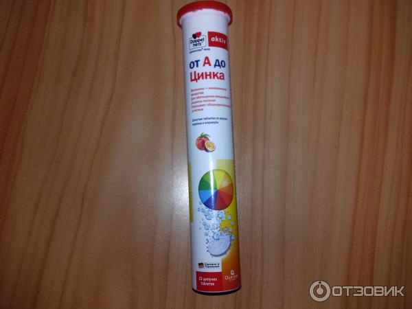 Шипучие таблетки «Доппельгерц актив от А до Цинка» перед приёмом необходимо растворять в воде . Вкусный фруктовый напиток, богатый витаминами и минеральными веществами очень быстро усваивается организмом .