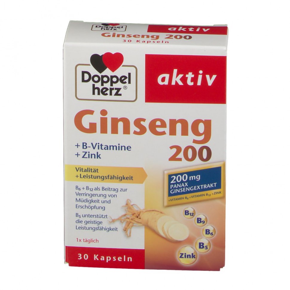 Доппельгерц Актив Женьшень + В-витамины + Цинк капсулы, 30 . . .