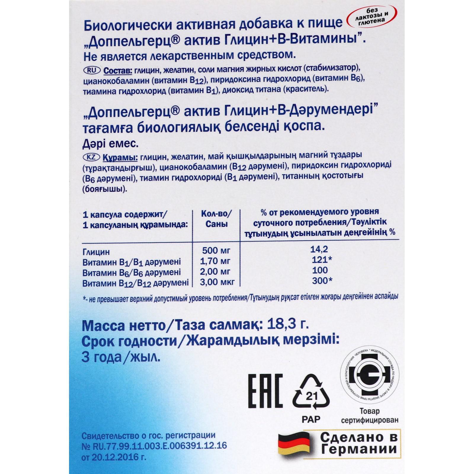 Доппельгерц актив глицин b витамины