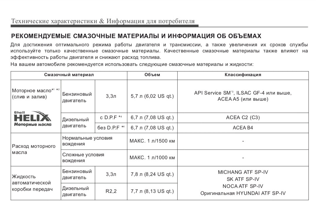Допуски масла хендай соната
