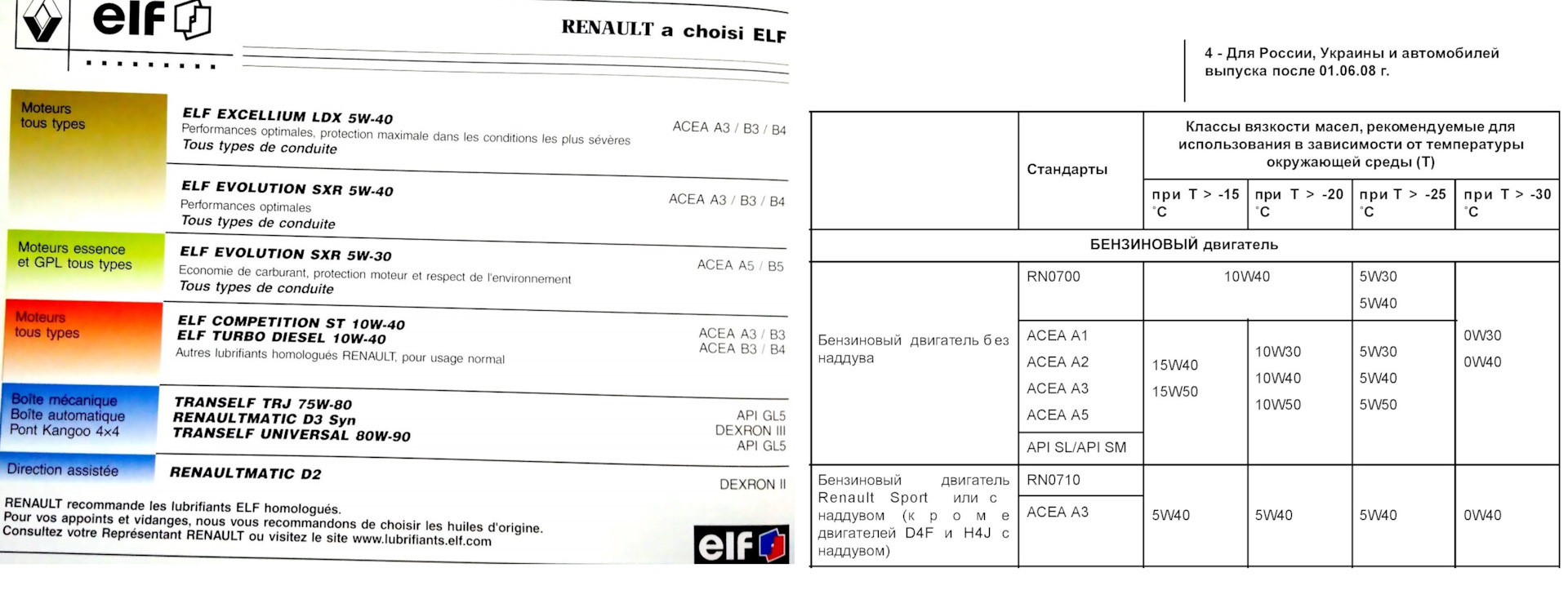 Допуски масла к4м рено