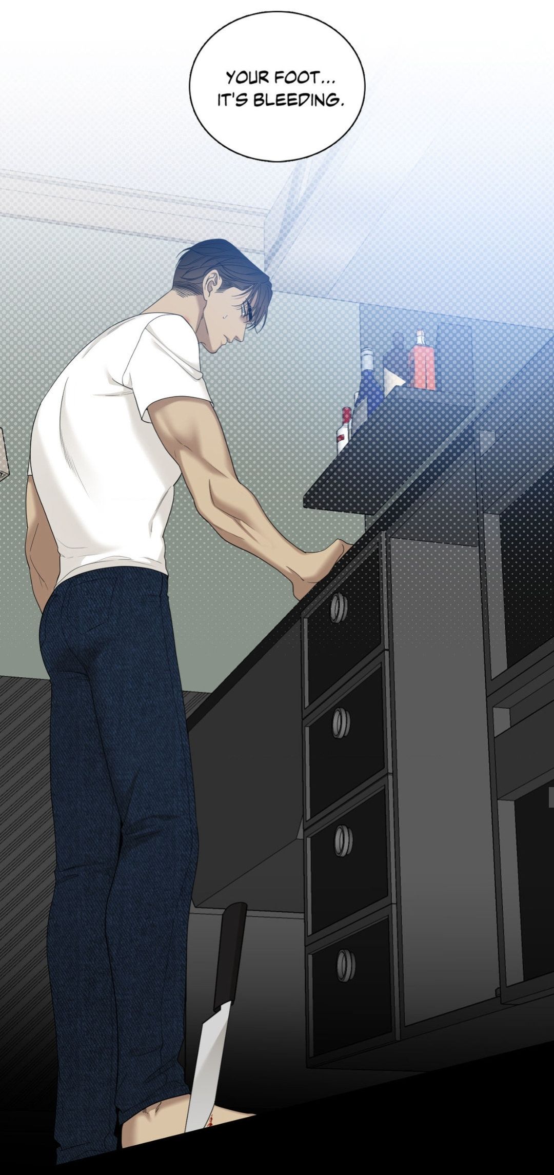 — По твоей ноге... Течёт кровь.
