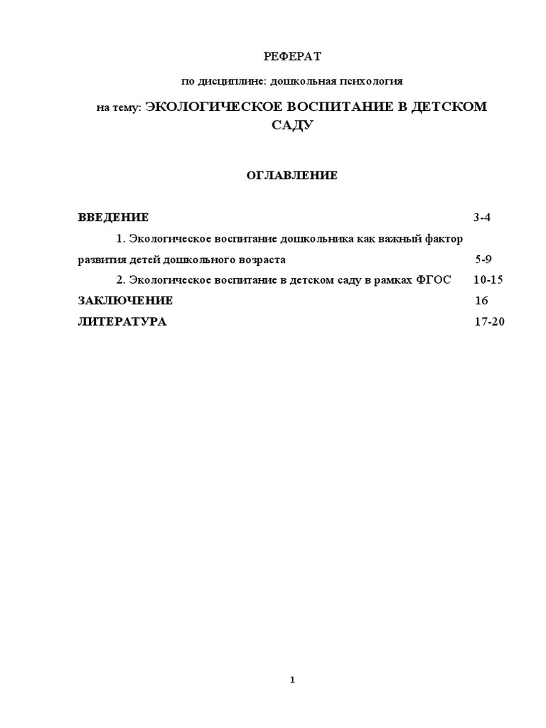 Дошкольное Воспитание Реферат