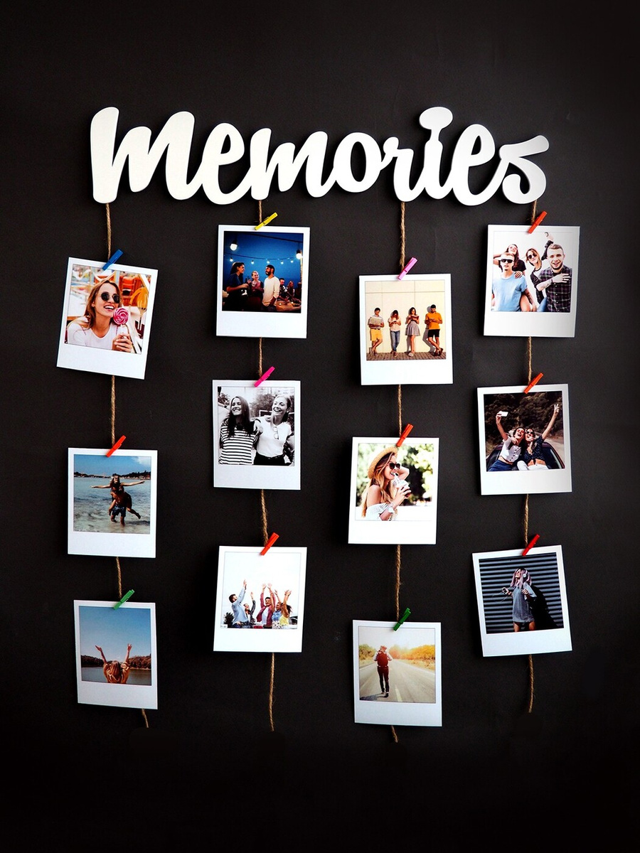 Как украсить стену фотографиями на прищепках