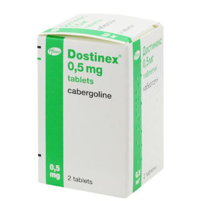 Достинекс (таблетки 0 .5 № 8 флакон) Пфайзер С .р .л Италия . 3504,55 р . от 3009,00 до 4000,10 р . Состав и форма выпуска: 1 таблетка содержит каберголина 0,5 мг; во флаконе темного стекла 2 или 8 шт ., в картонной . . .