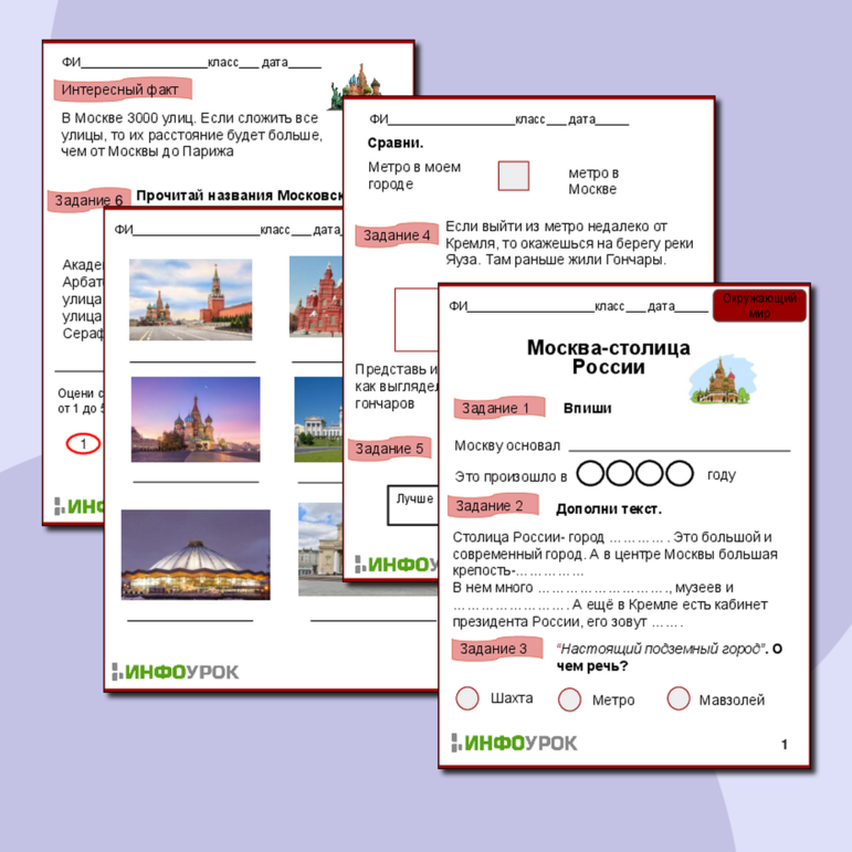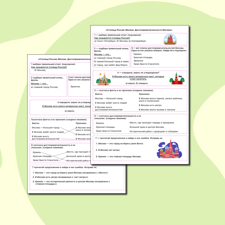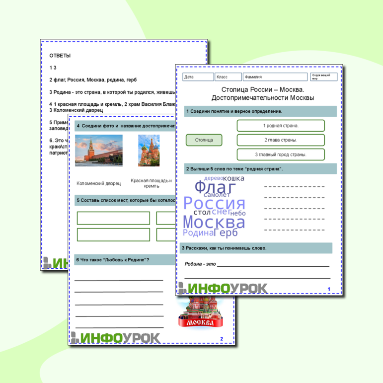 Достопримечательности москвы рабочий лист