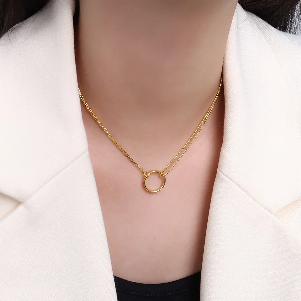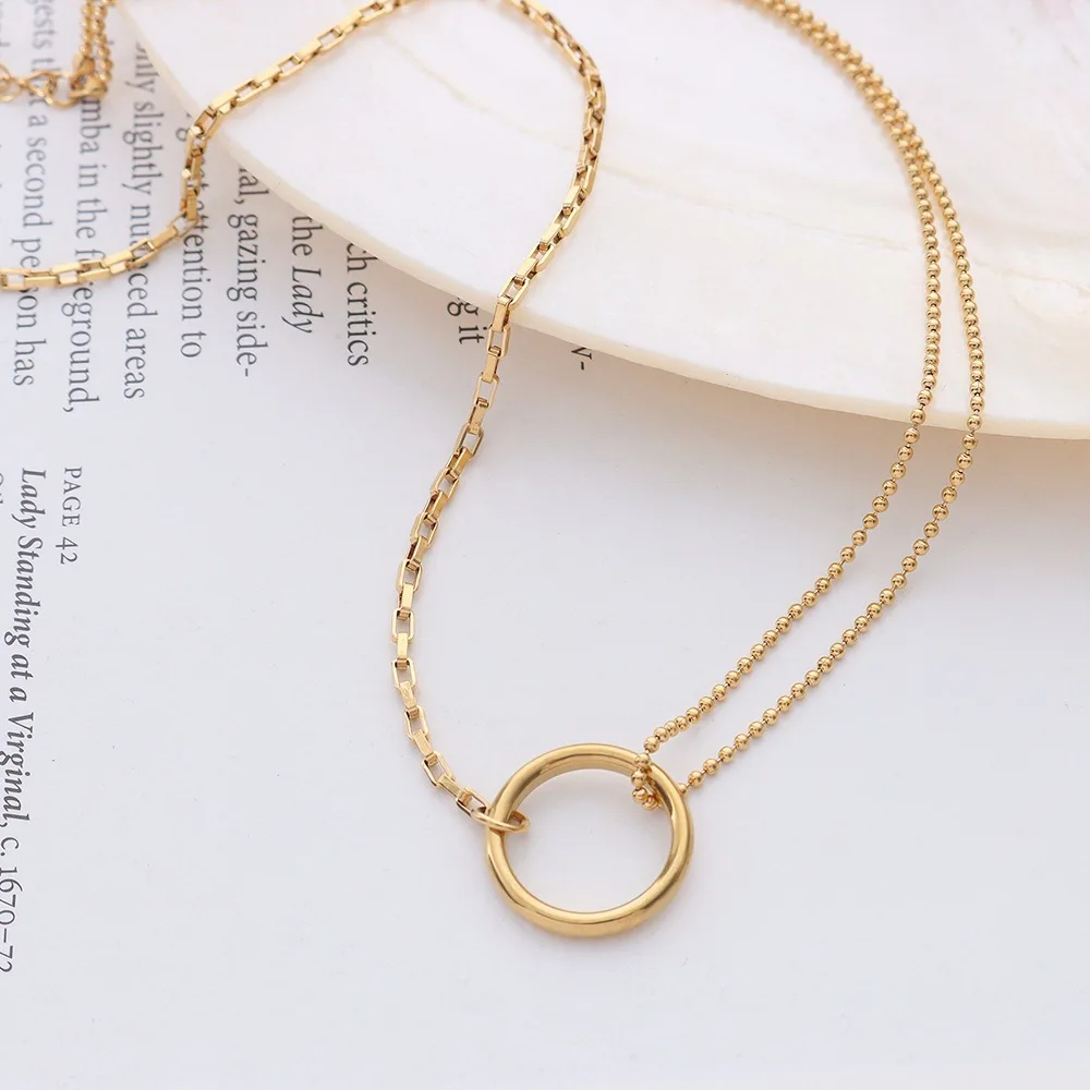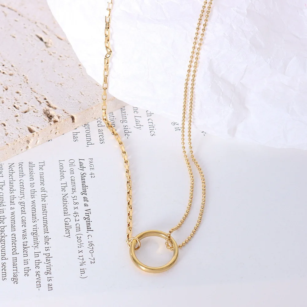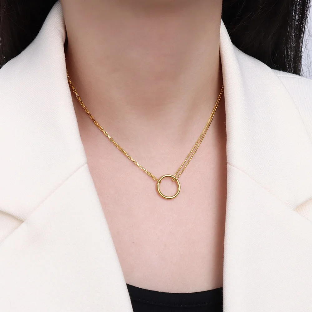 ZMGfnesgHere you can buy Double Chain Splicing Collarbone Chain Titanium Steel Circle Necklace with free delivery to your post office.