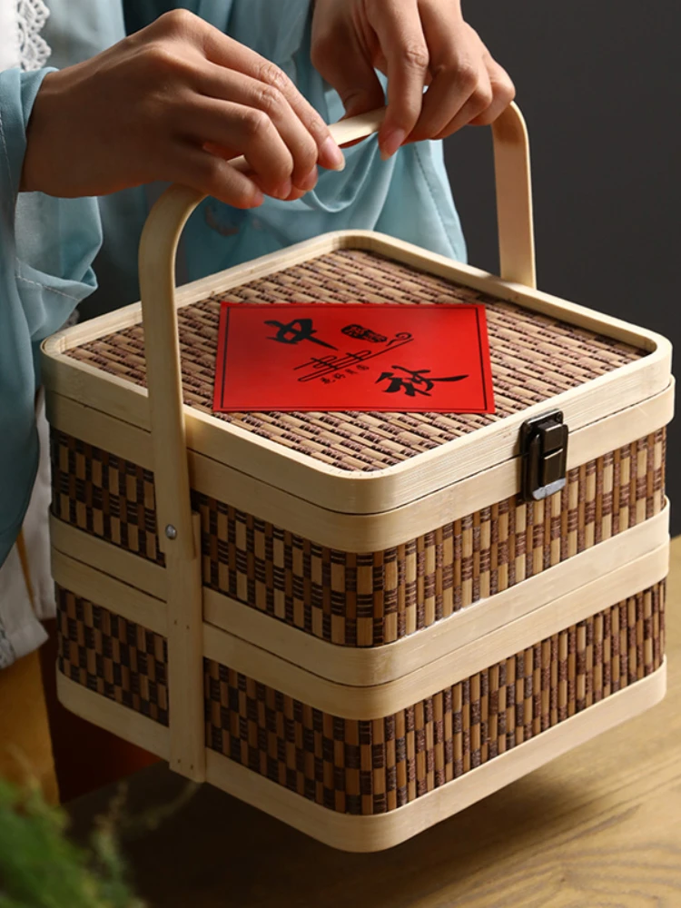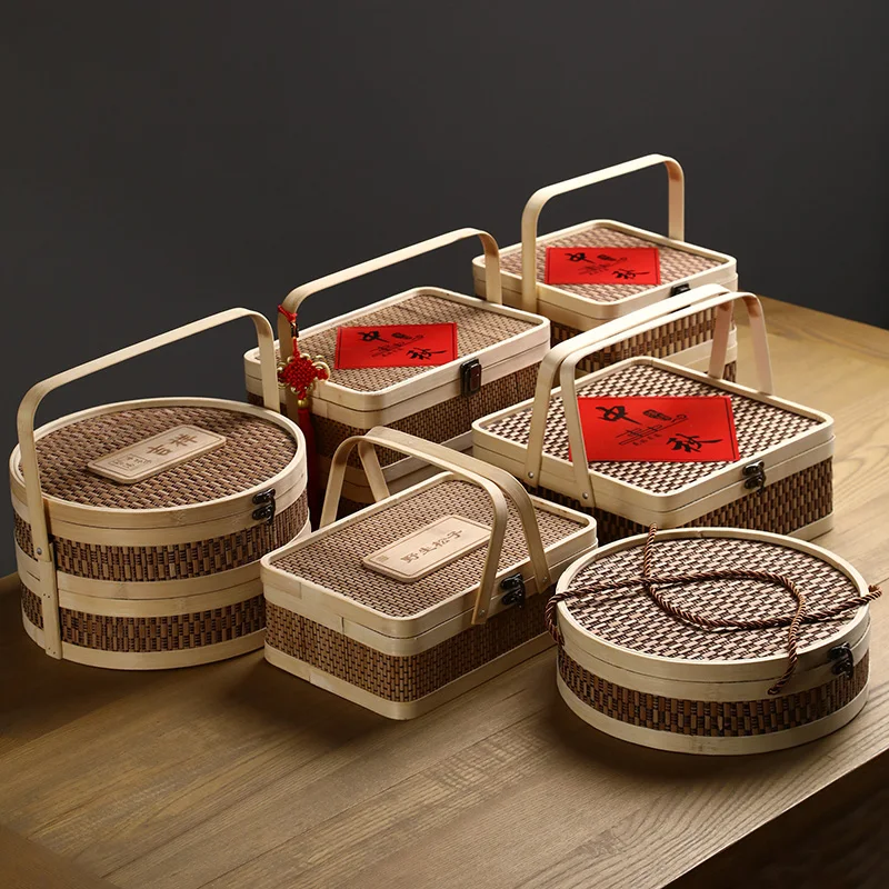 Double Layer Bamboo Woven round Packing Box Gift Mid-Autumn Festival Moon Cake Box Tea Box Foodstuff Box Bamboo Gift Box - Купить с бесплатной доставкой