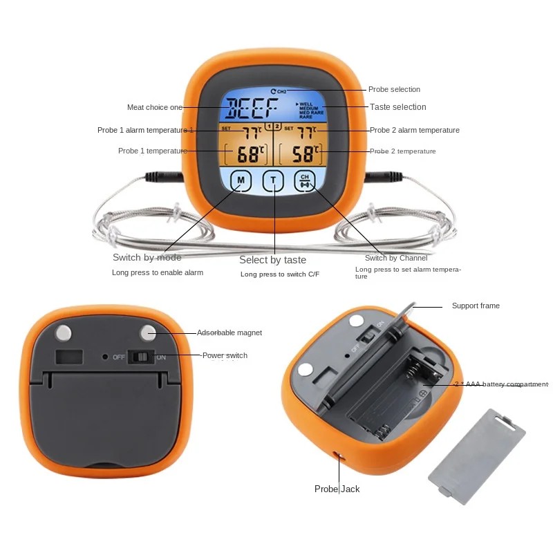 CHVyxXOwHere you can buy Double Needle Color Screen Food Kitchen Termometro Baking Touch Digital Display Thermometer Probe Type Meat Barbecue Thermometer with free delivery to your post office.
