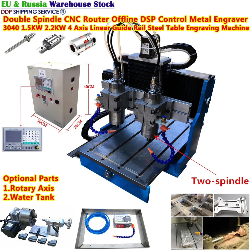 wUmwOZjyaMHere you can buy Double Spindle CNC Router Offline DSP Control Metal Engraving Machine 3040 2.2KW 4 Axis Linear Guide Rail Steel Table Engraver with free delivery to your post office.
