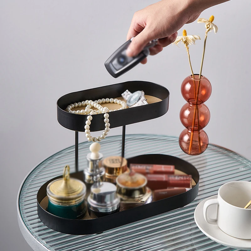 "Double Storage Tray Black Metal Jewelry Cosmetic Tea Cup Candle Storage Tray Porch Desktop Decor Storage Box Double Storage Rack" * Buy Now With Free Shipping Just For $80