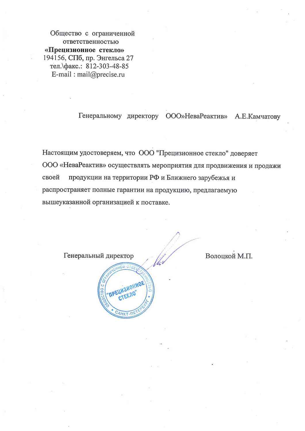 Доверительное письмо на тк