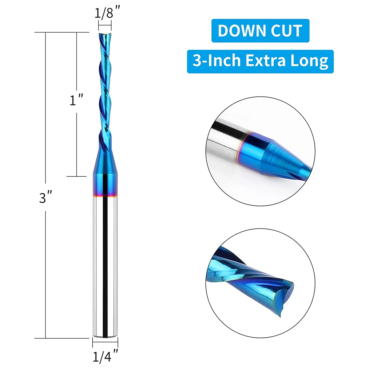QnYegKyWHere you can buy Downcut Spiral Router Bit 1/4 Inch ,1/8 Inch Cutting Diameter, Extra Long 3 Inch Solid Carbide for Wood Cut,Carving with free delivery to your post office.