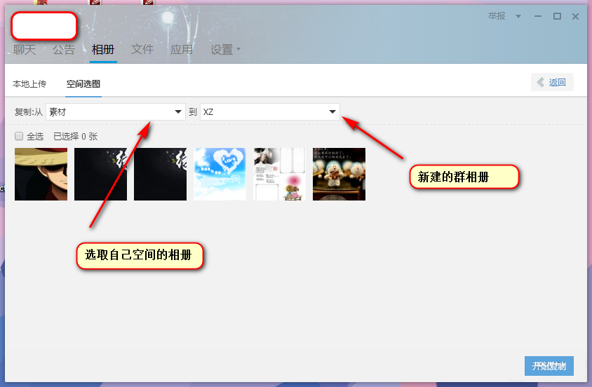 2、在群相册里边新建一个相册用来存图用,然后选择上传图片进入如下窗口