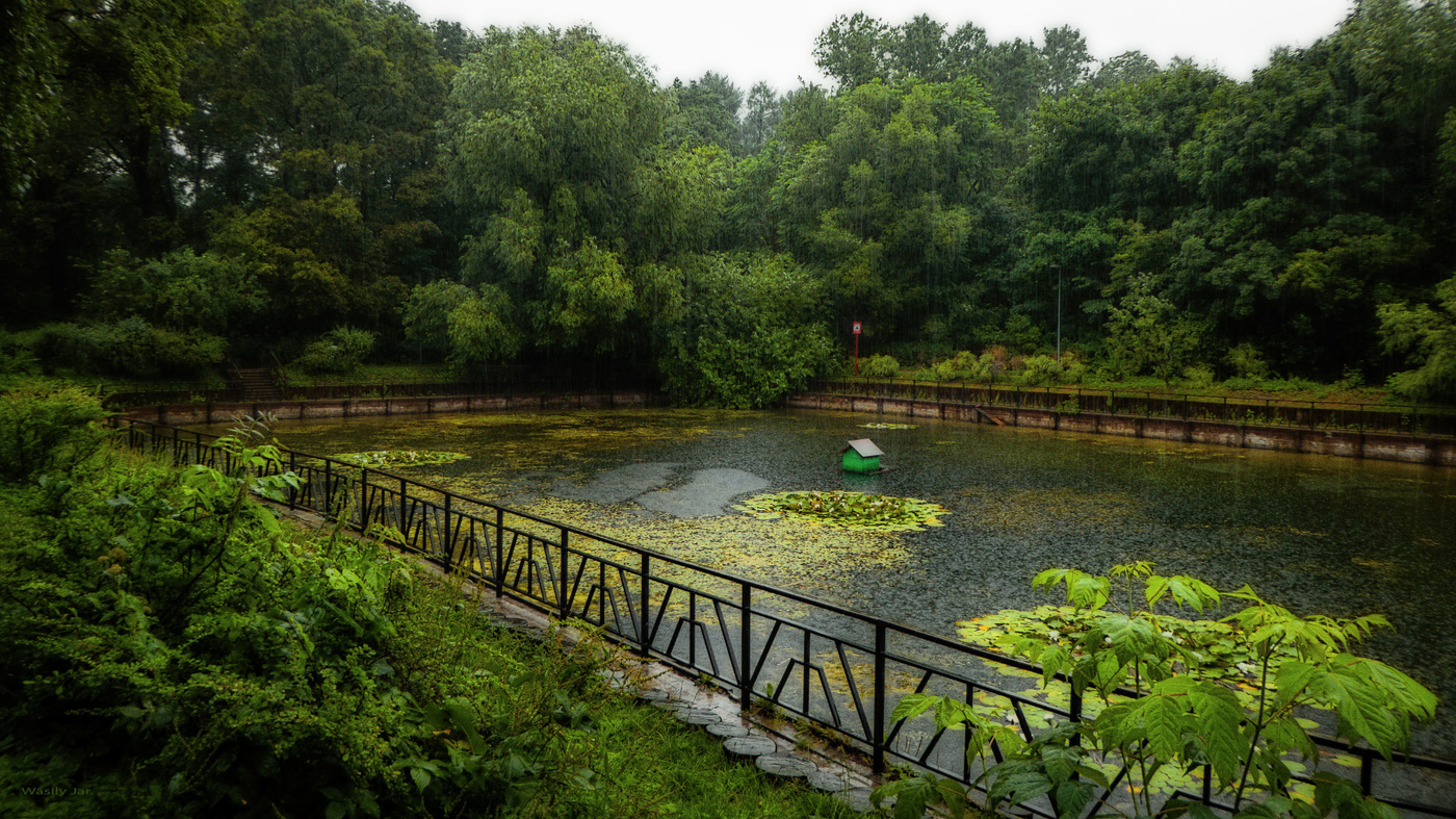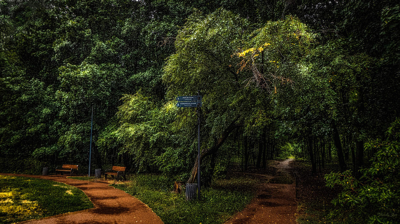 Дождь В Парке Фото