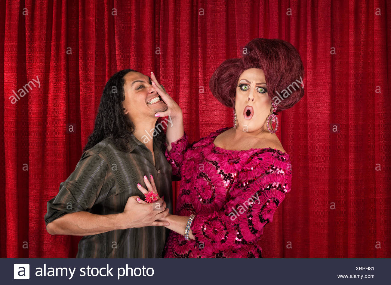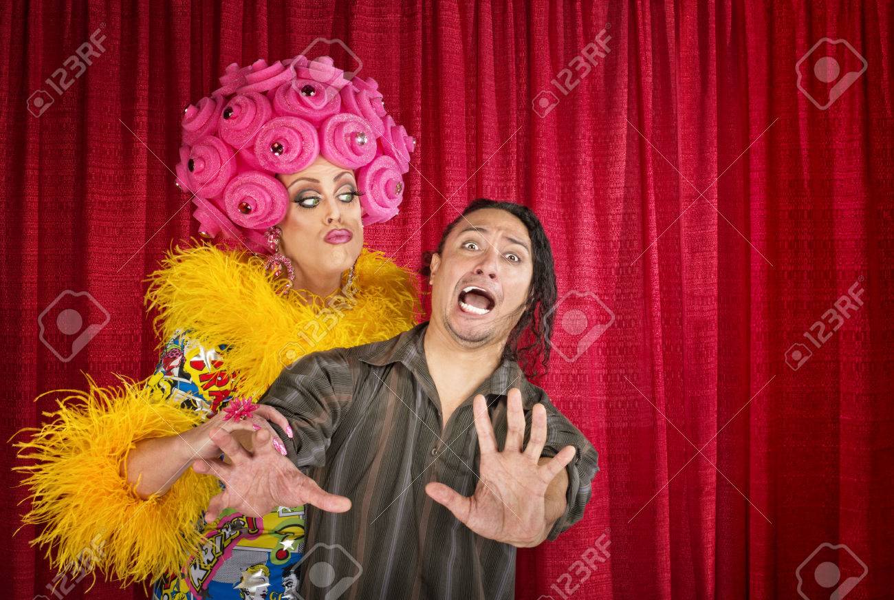Drag queen kisses a woman - download this royalty free Stock Photo in seconds . No membership needed .