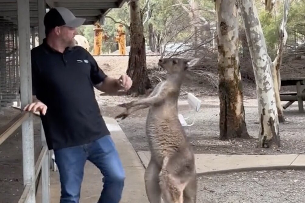 Драка кенгуру с человеком