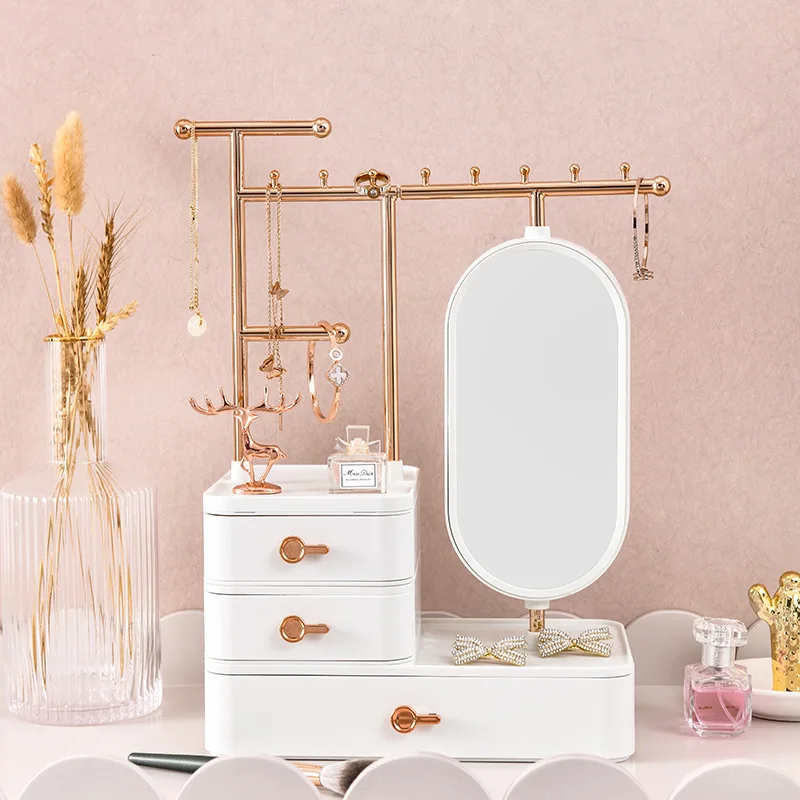 Drawer Makeup Organizers Mirror Box Ring Display Type Rotating Earring Lipstick Jewelry Storage With Rack Necklace - Купить с бесплатной доставкой