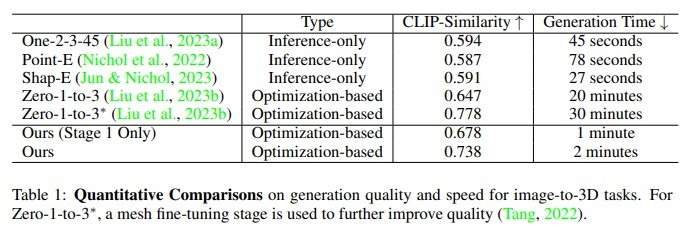 Compared with: DreamFusion, Shape-E, Point-E, One-2-3-45, Zero-1-to-3