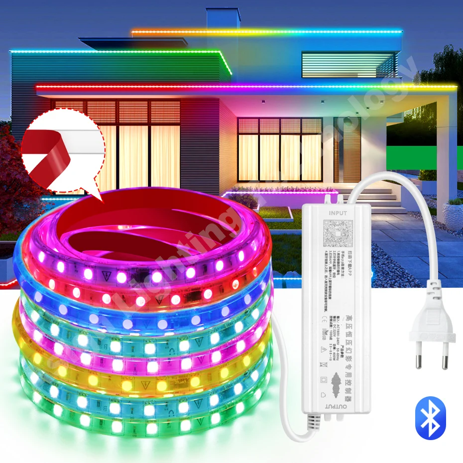 SizVZZDsLEHere you can buy Dreamcolor RGBIC Led Strip Light 220V 60LEDs/m Adhesive Flexible LED Tape RGB Dimmable 5050 Waterproof Smart Bluetooth Led Rope with free delivery to your post office.