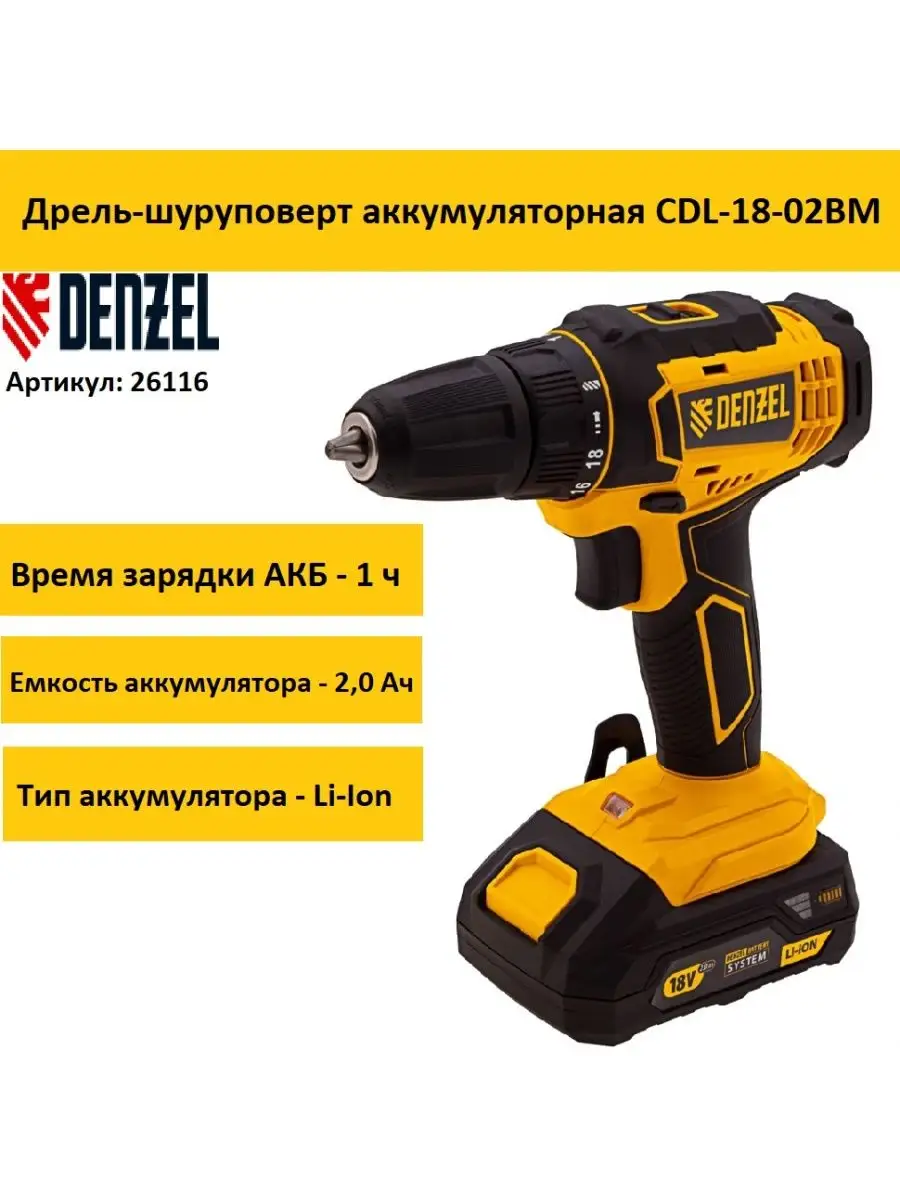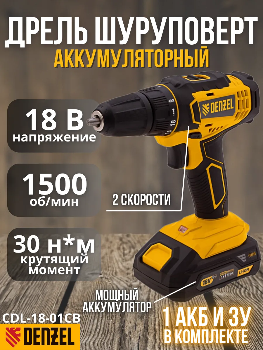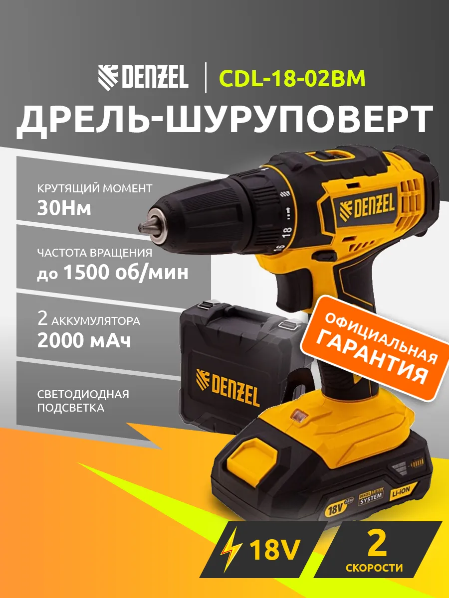 Дрель шуруповерт denzel cdl 18 02bm 134 фото
