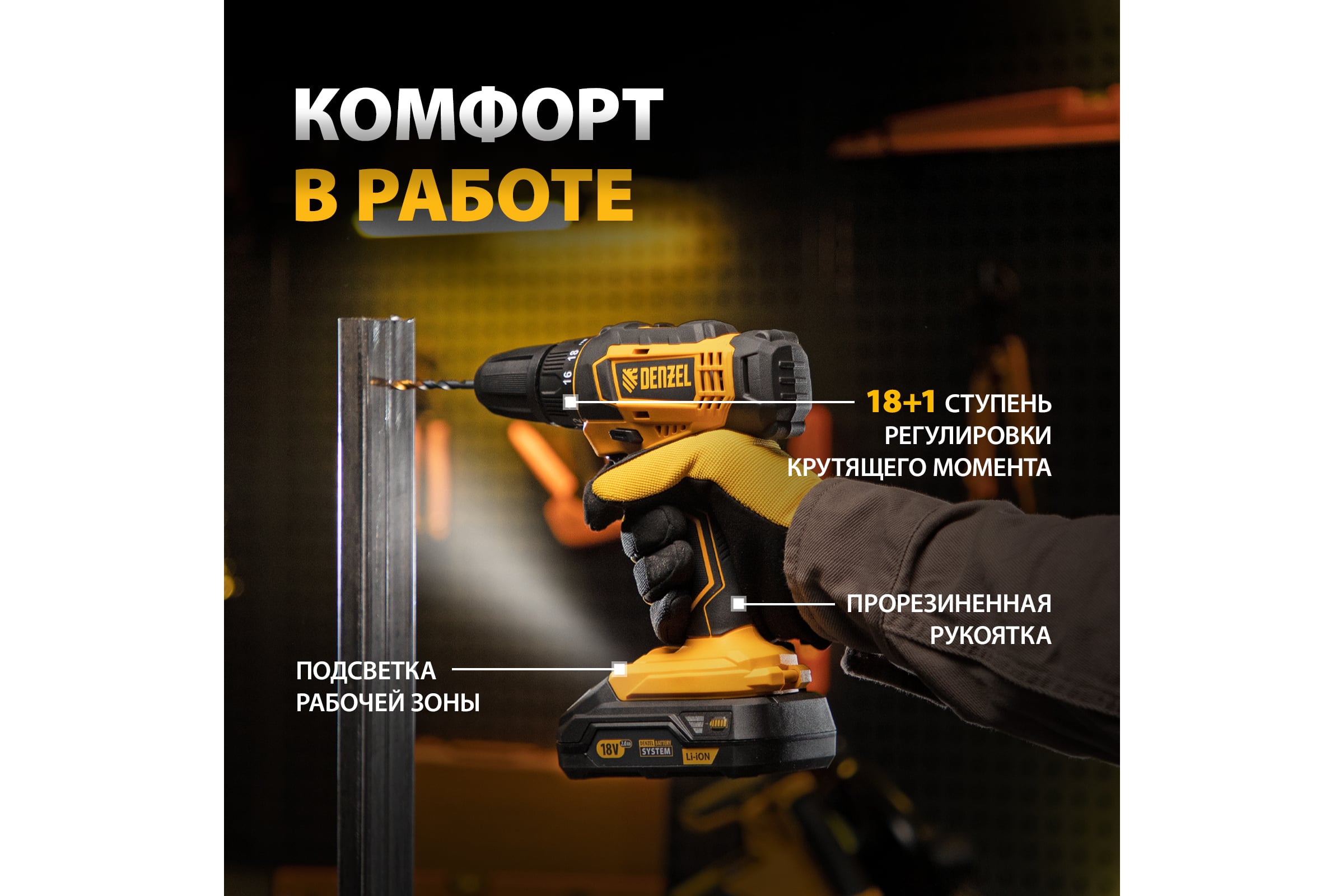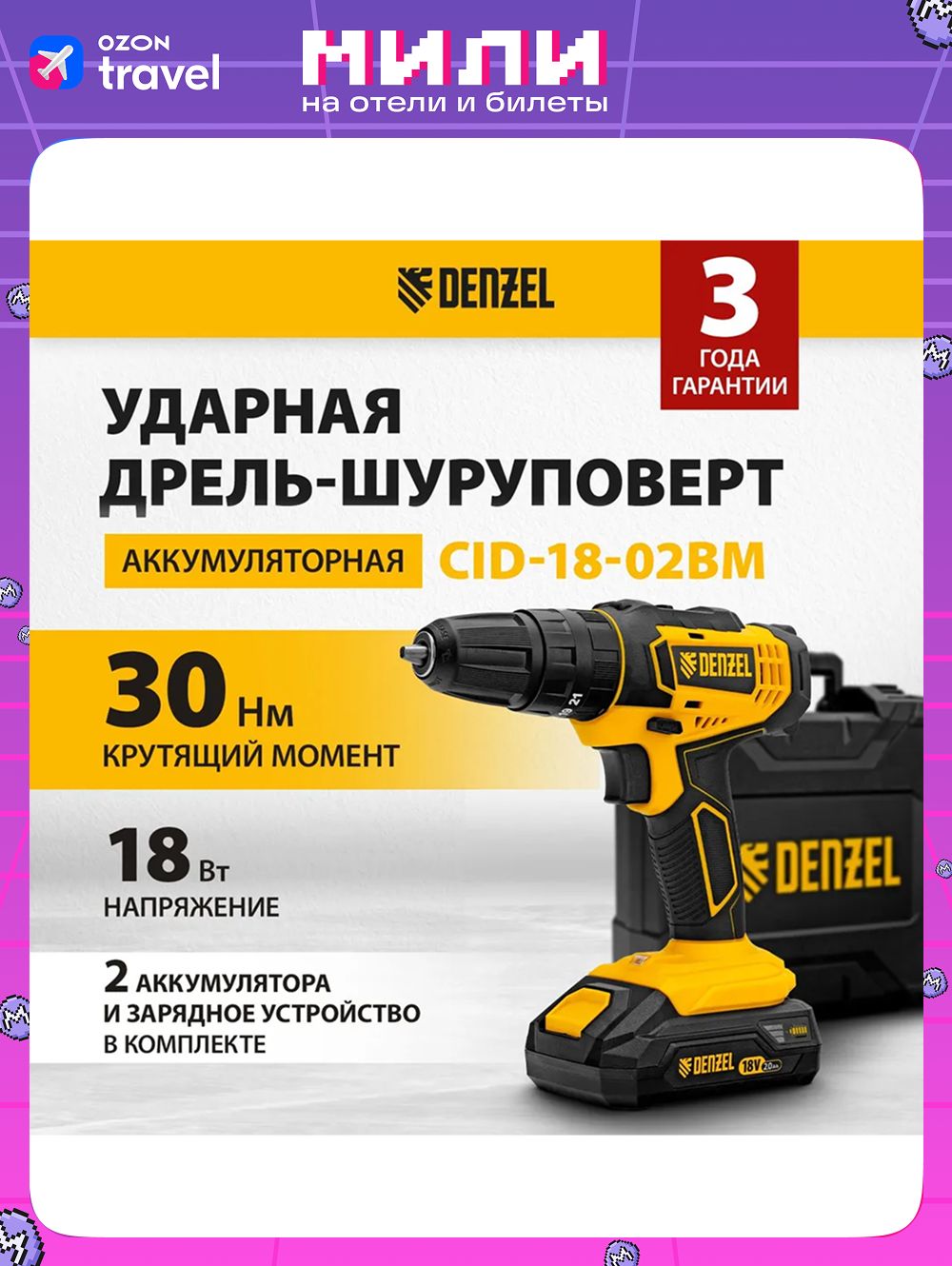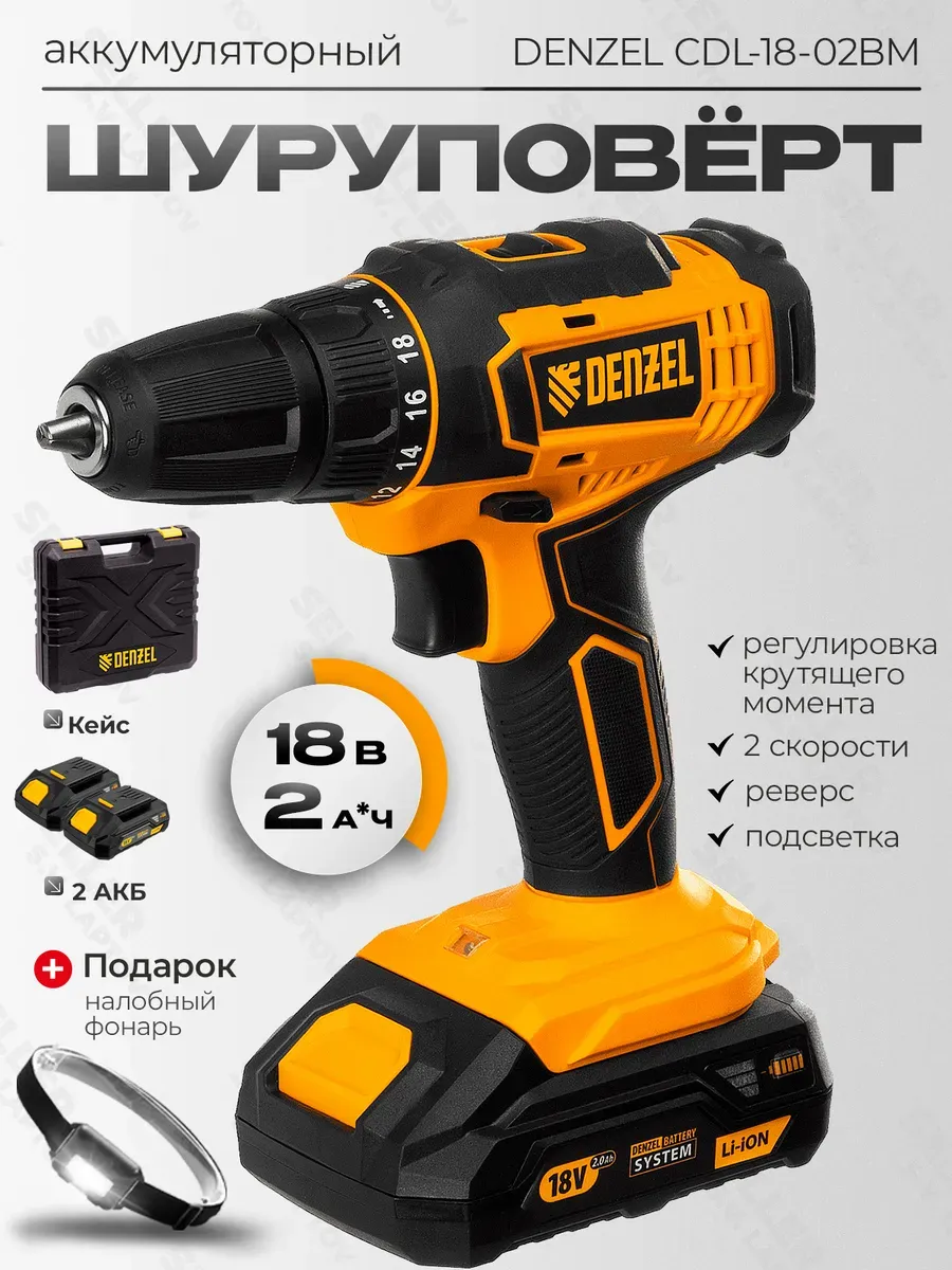 Дрель шуруповерт denzel cdl 18 02bm 134 фото