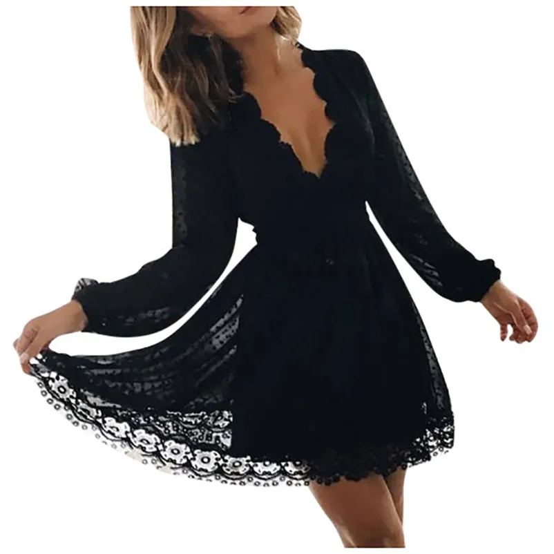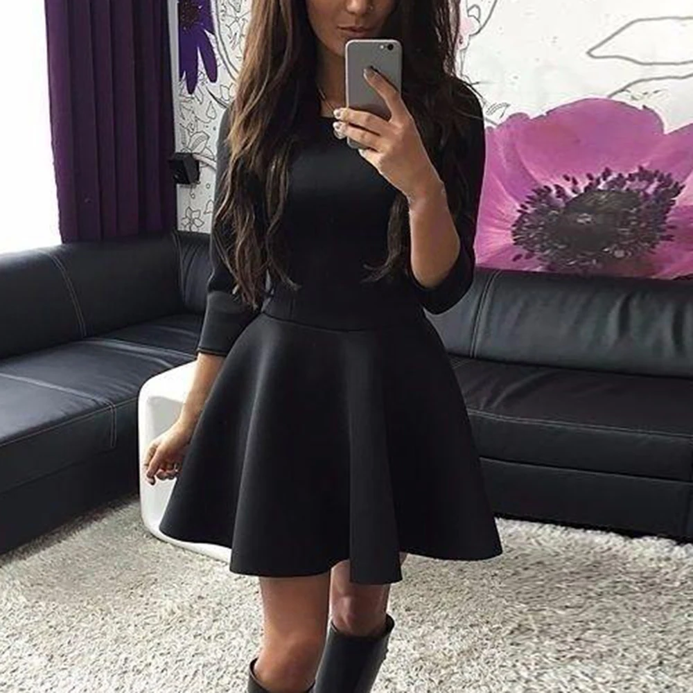 Ladies Autumn Dress Casual Solid Color Low-Cut V-neck Tight Long Sleeve Dress Women's Clothing