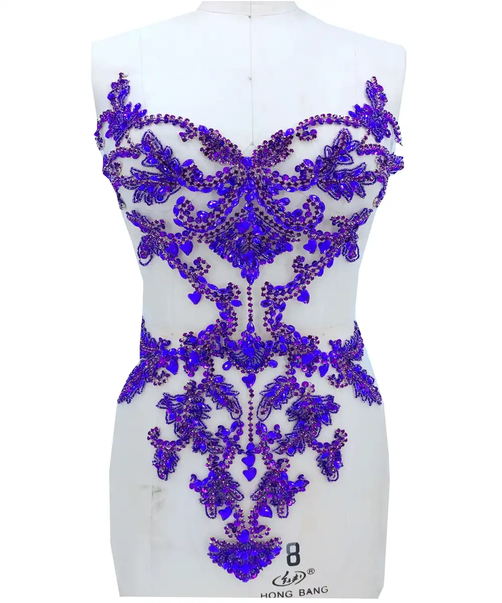 Sky Blue Sequin Embroidery Lace Peacock Applique Lace Fabric Trimming Sewing Patch Wedding Gown Dress DIY Crafts