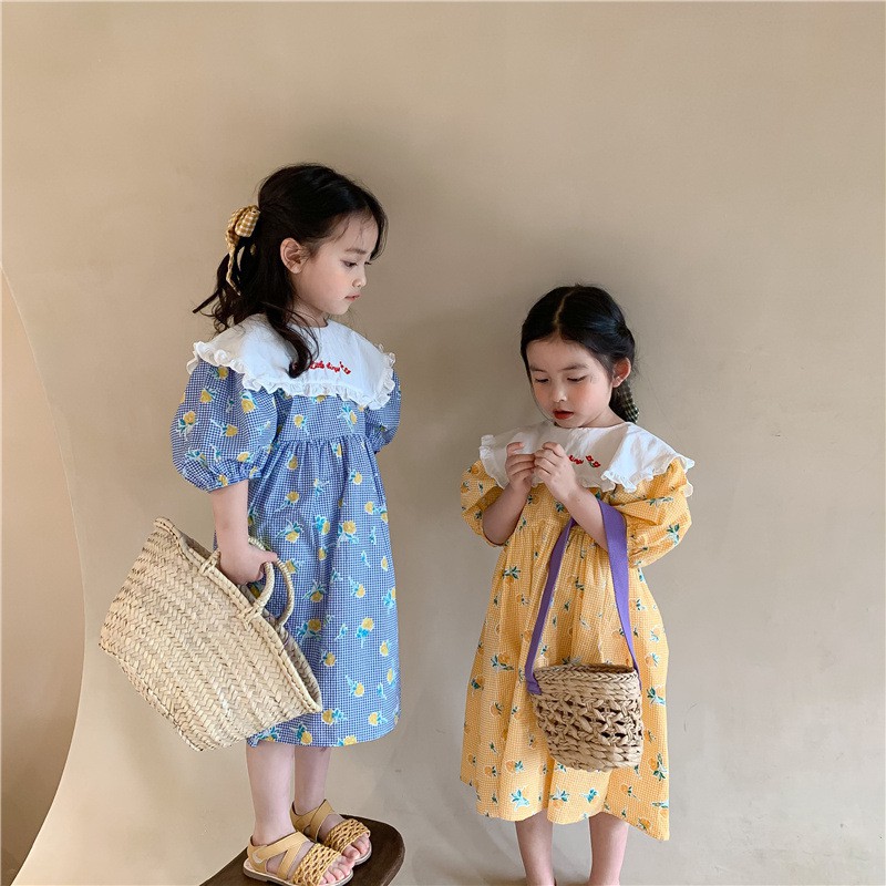 Pure Cotton Girls Summer Dress Sleeveless O-Neck Baby Kids Dresses Original Design A-Line Yellow Children dresses With Lace