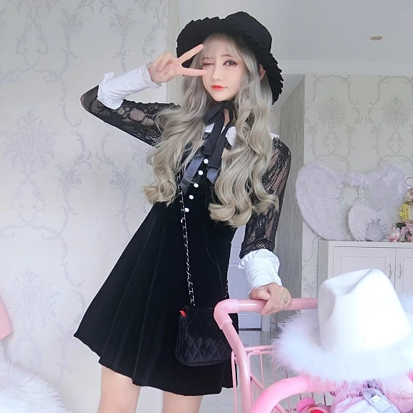 SweetCool Vintage Summer Girl Violet Dress Harajuku Punk Sweet Preppy Style Temperament Kawaii Fashion Sling Chiffon Dress