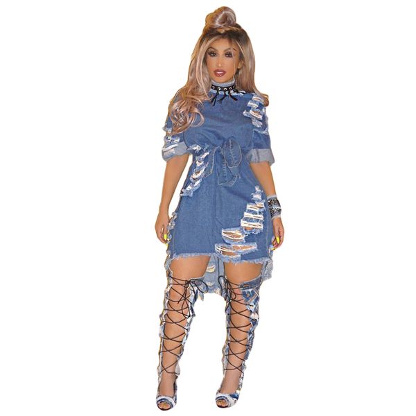 Bulk Item Wholesale Lots 10pcs Women Dresses Hole Burnt Flowers Simple Casual T-shirt Solid Color Dress Sexy K6932