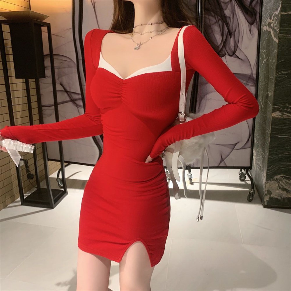 Sexy pure V Neck off shoulder bodycon dress women dress spring 2022 club party night red Elegant midi dress vintage black dress